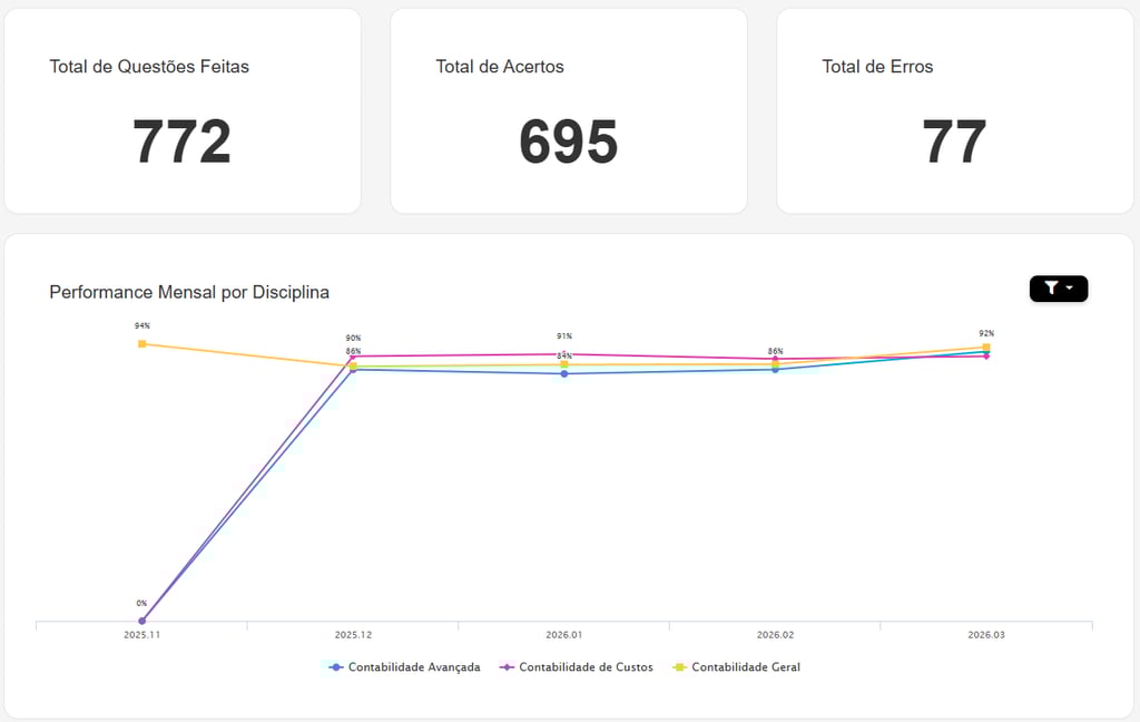 ✓ Plataforma de acompanhamento com controle de desempenho por assunto;
