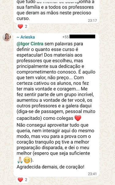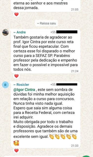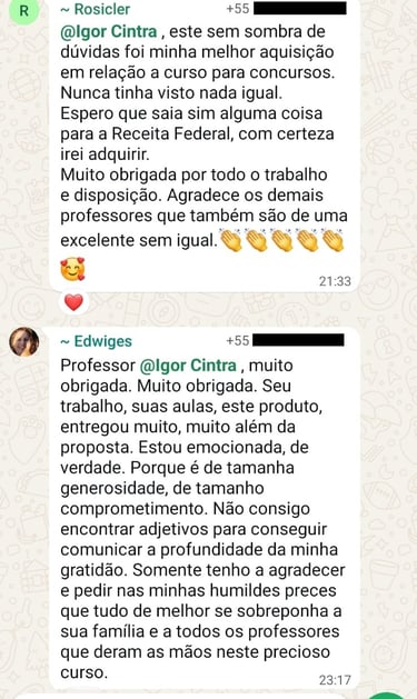O que os alunos estão falando sobre o curso do Prof. Igor Cintra?