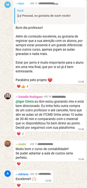 “Esse é o professor que conseguiu me ensinar a fazer DFC pelo método indireto! Só isso já bastaria, mas tem muito mais. As aulas são excepcionais. Tudo extremamente metódico, com explicações fáceis de entender e ao mesmo tempo que não deixam faltar nada. Dicas, questões, explicações… Tem tudo! Não tem banca que sobreviva ao material do Igor Cintra quando o assunto é contabilidade. E eu posso falar isso de coração, já que aprender contabilidade foi por muito tempo um ENORME desafio para mim. Mesmo com estudos e reestudos, parecia que nunca iria entrar na minha cabeça. Isso mudou assim que tive acesso ao material dele. Muitas coisas que eu encarava como complexas de uma hora para outra se tornaram claras em razão da forma lógica e organizada como o professor explica tudo.”